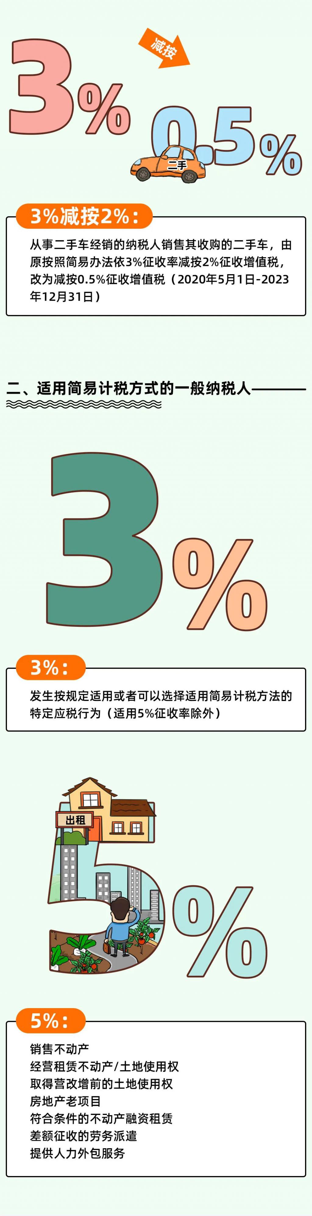 房地产开发企业中的小规模纳税人,销售其自行开发的房地产项目;小规模纳税人销售其自建或取得的不动产;小规模纳税人出租(经营租赁)其取得的不动产(不含个人出租住房,个人包括个体工商户和自然人,个人出租住房,按照5%的征收率减按1.5%计算应纳税额);小规模纳税人提供劳务派遣服务,选择差额计税的,适用5%征收率计算缴纳增值税。
